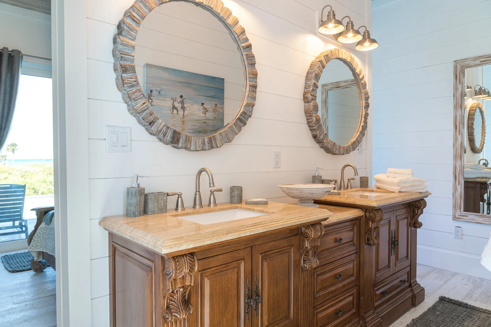 The home’s design is centered around indoor-outdoor living, with every bedroom offering direct access to the wraparound patio and a scenic path that leads you straight to the ocean’s edge. Whether you're basking in the sunshine by the sea turtle-inspired pool or enjoying a quiet moment with a book beneath swaying palms, Blue Reef Villa strikes the perfect balance between playful energy and peaceful retreat.